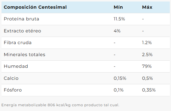 Carne de cordero, agua de manantial, corazón de cordero, hígado de cordero, riñón de cordero, pulmón de cordero, carne vacuna, aceite de pescado, pulpa de remolacha, sal, cloruro de potasio, lisina, metionina, levadura, carragenina, goma guar, tripolifosfato de sodio. Vitaminas: A, D3, E, B1, B2, B6, B12, colina, ácido fólico, ácido nicotínico, ácido pantoténico. Minerales: zinc, hierro, cobre, manganeso, yodo y selenio.
